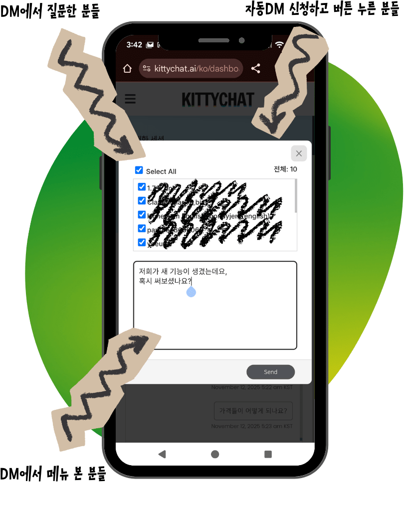 지난 24시간 동안 내 DM에서 위의 기능들로 교류가 있던 사람들에게 단체DM을 보낼 수 있어요.